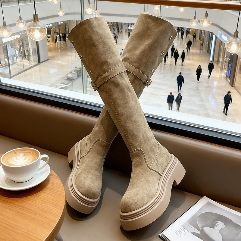 膝上ブーツ 女性 2025年春秋モデル 身長を高く見せ 細身効果 ロングブーツ 小柄な方へ ハイカット乗馬ブーツ 冬用