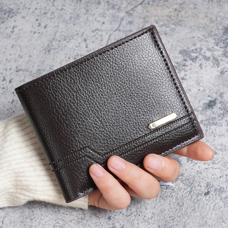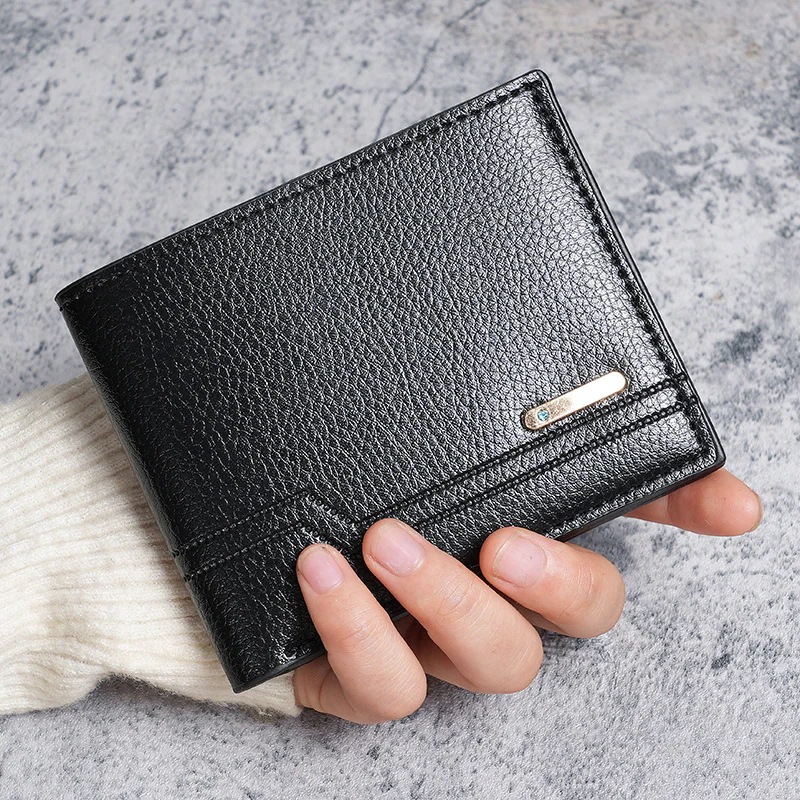 新作メンズ財布 ショートサイズ財布 ファッションカジュアルなライチ革風 ソフトレザー財布 カード収納力 大容量 小型財布