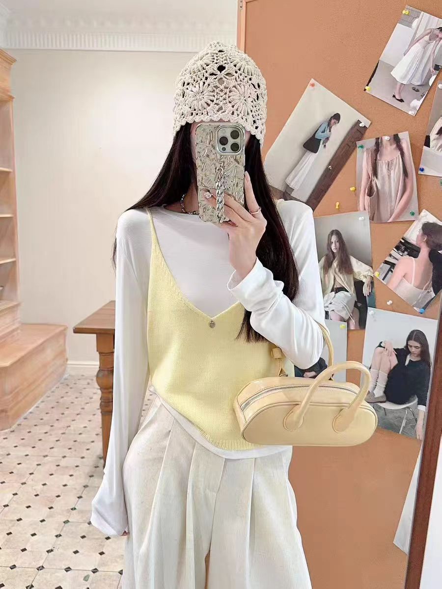 重ね着 キャミソール ビスチェ レディース 2way ベスト ニット プルオーバー トップス ニット編み ニットベスト ニットキャミソール Vネック ゆったり ストレッチ キャミ ノースリーブ レ