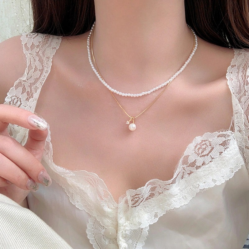 【送.料.無.料】ゴールドメッキ 2 連パール 高級感 繊細 チョーカー ネックレス ハイセンス