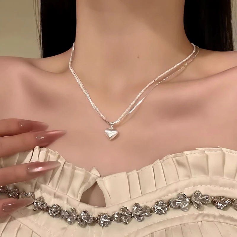 【送.料.無.料】韓国風 シンプル 2 連 ヘアラインハート 高級感 チョーカー ネックレス ハイセンス