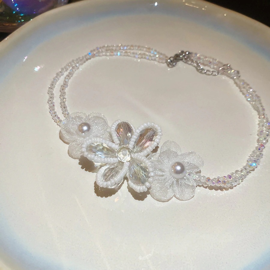 【送.料.無.料】ステンレス クリスタルビーズ フラワー エレガント 高級感 ネックレス ハイセンス