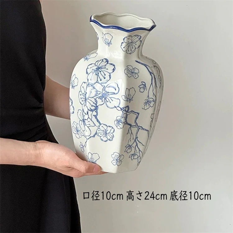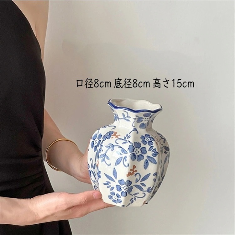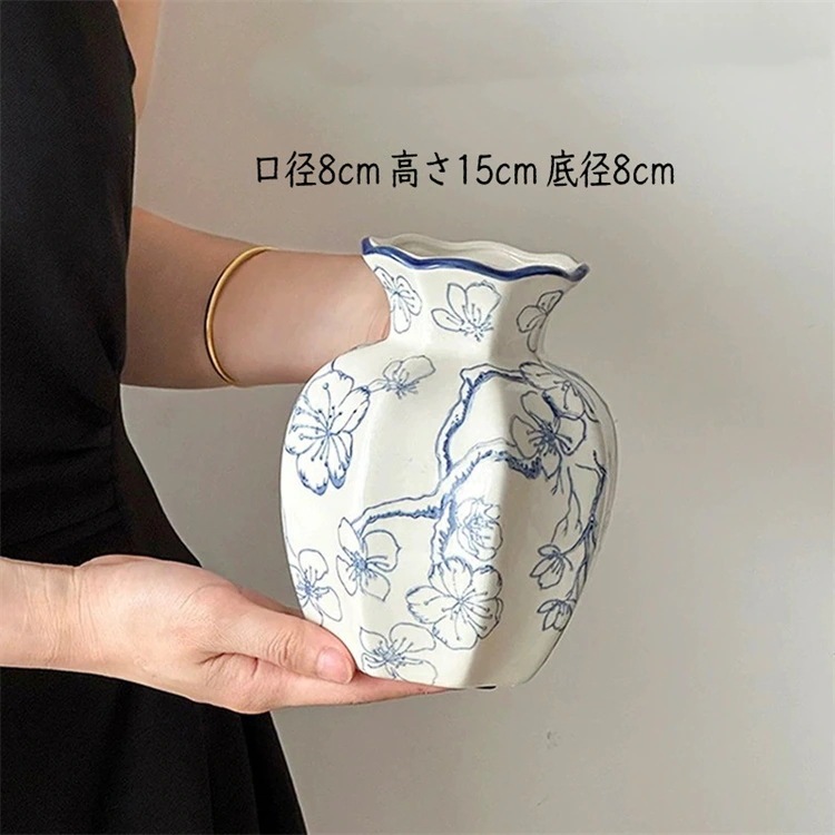 早い者勝ち ひとつひとつ表情の違う青花模様 食卓やベッドルームの小スペースを優しく飾る手づくり風花瓶