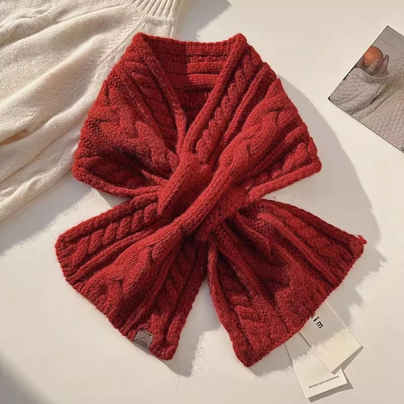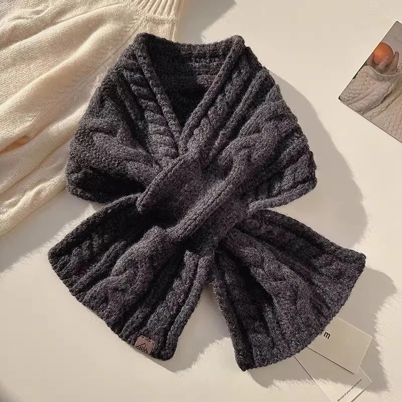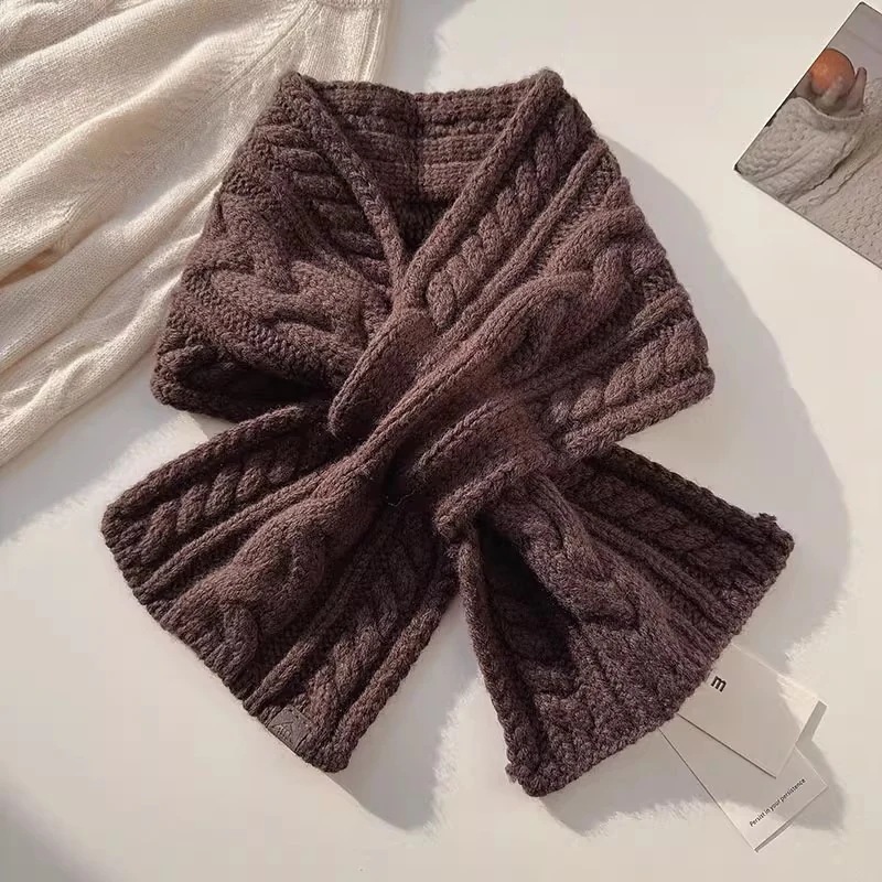 フリース麻の小さなマフラー韓国系純色クロスジャックニットマフラー保温