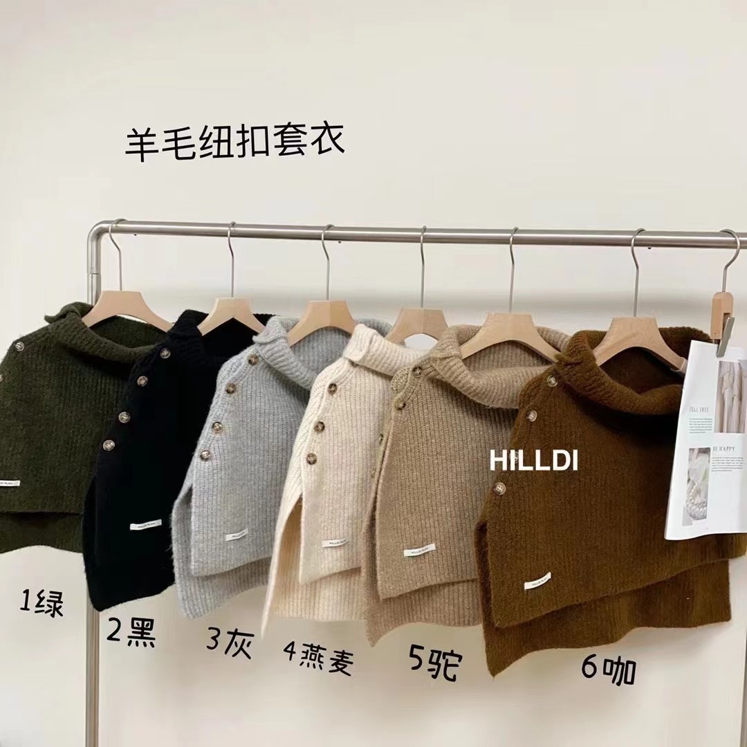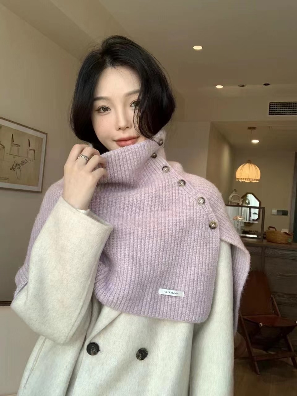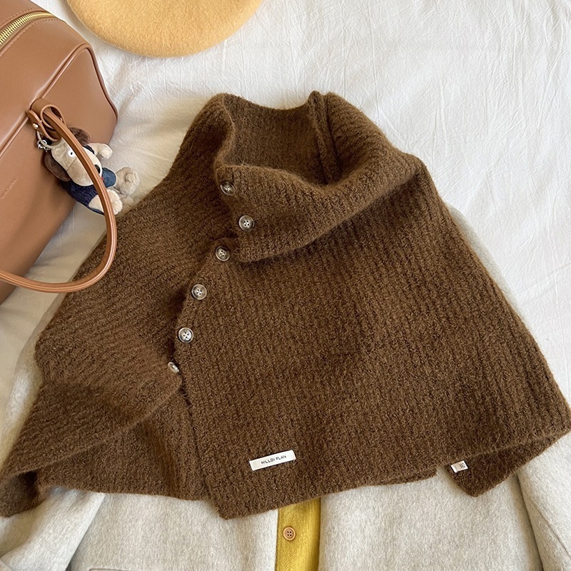 ウールを含むモダンでだるい風合いのストールマントック保温ボタン毛糸ニットアウター