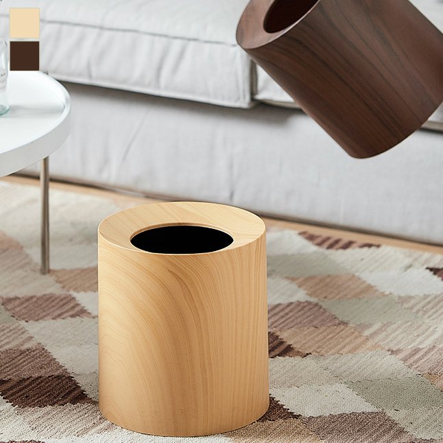 インテリア ウッド調 トラッシュ ラウンド型 ダストボックス リビング用品 寝具収納 ゴミ箱 大きめ