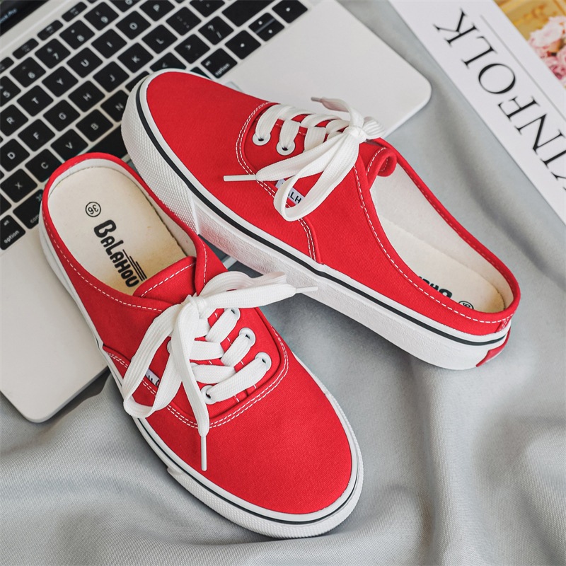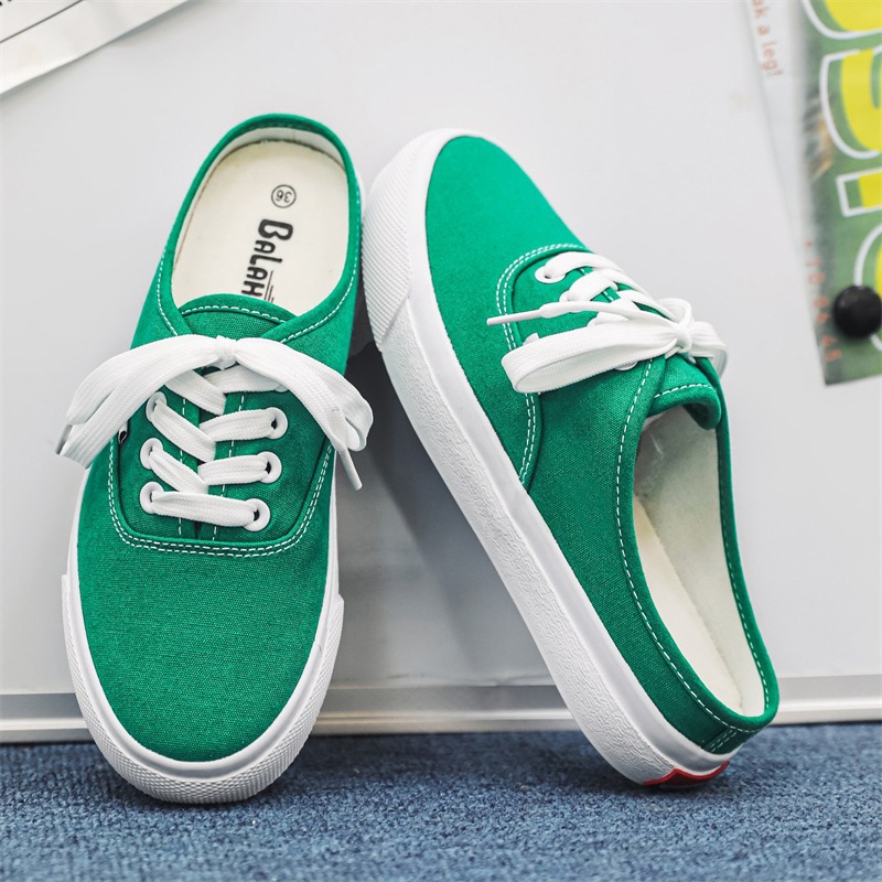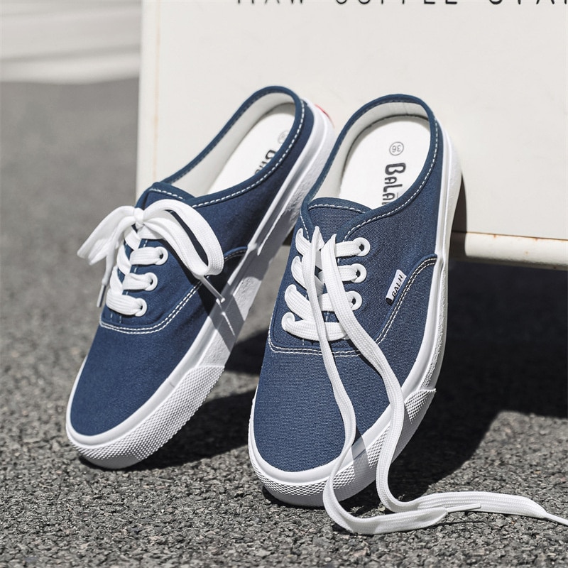 SMFashion5色展開 レディース キャンバスシューズ ミュール 2way 踏みつけ履き フラットソール スポーツ カジュアル ミュール サマースリッパ