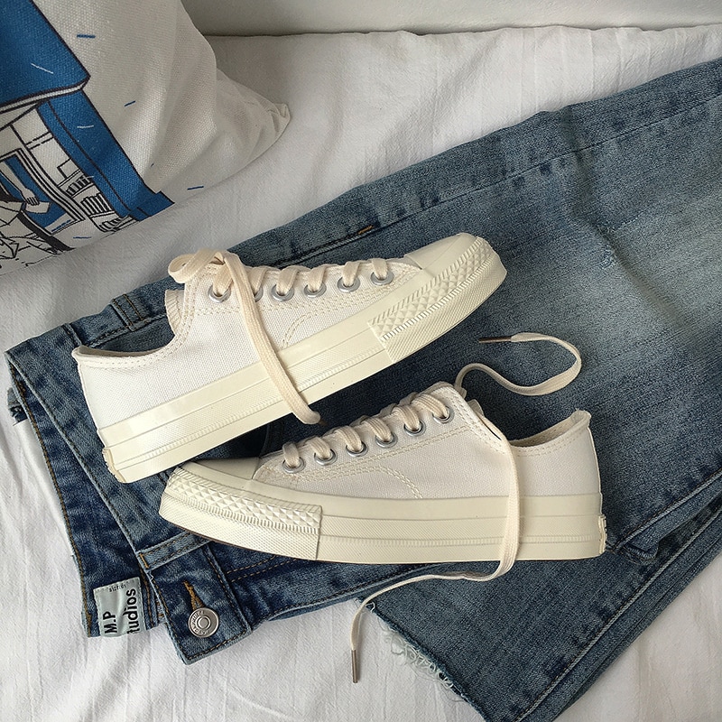 SMFashion春夏に入る前の準備 キャンバスシューズ レディース インス人気 通気性 フラット カジュアル ホワイト キャンバス スニーカー