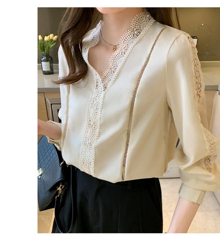 ブラウス レディース きれいめ 夏服 40代 春秋新作 オシャレブラウス 無地シャツ 長袖トップス レースvネックブラウス 大人 通勤 ゆったり シャツ30代 50代