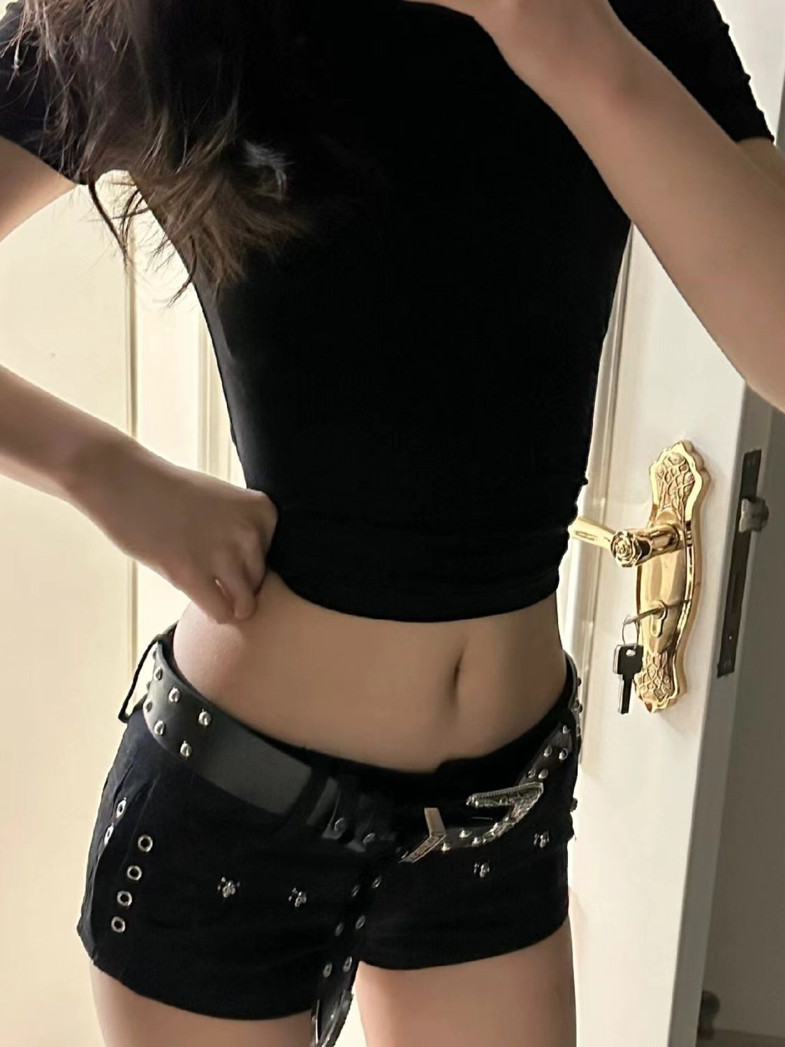 春夏 レディース アメリカン ガーリー ダーク ペンシルパンツ スタッズ デザイン感 デニム ミニショートパンツ ハイウエスト スリム ホットパンツ
