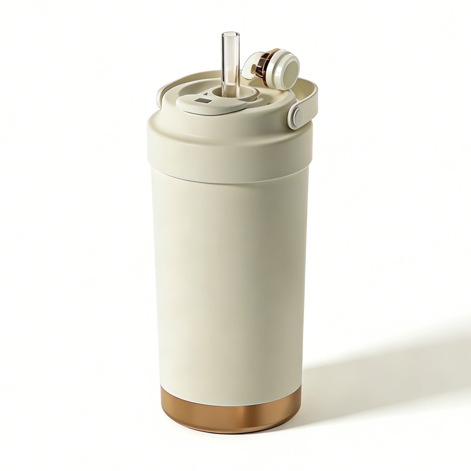 タンブラー セラミック 水筒 500mL 750真空断熱 保温保冷できるボトル コーヒーカップ マイボトル 漏れにくい魔法瓶 大容量 蓋付き ストロー付き 取っ手付き セラミック加工 軽量 炭酸対応