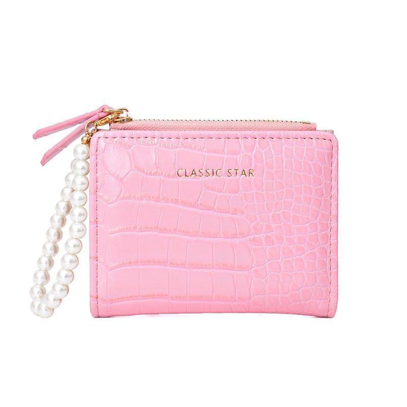 手のひらサイズに 上品なレトロ感を ミニ財布 レディース 新作 コンパクト 財布 やわらかい PUレザー パール付き カードケース 一体型 ファスナー 小銭入れ コインケース 二つ折りフレンチ