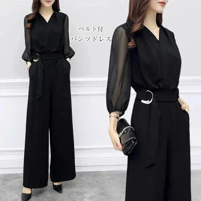 パンツドレス 結婚式 セットアップ レディース オールインワン 大きいサイズ 長袖 パンツスーツ ワイドパンツ 卒業式 パーティードレス 着痩せ パンツ フォーマル パーティー 披露宴 二次会