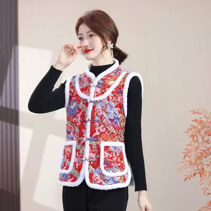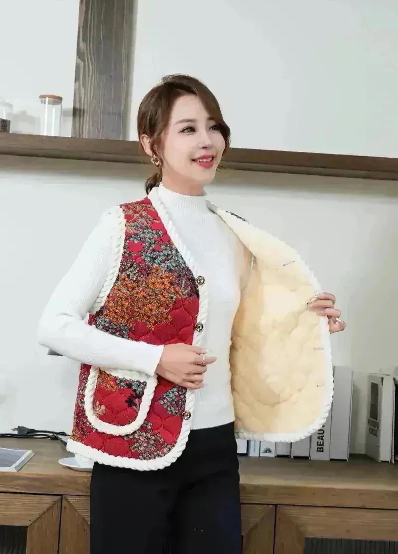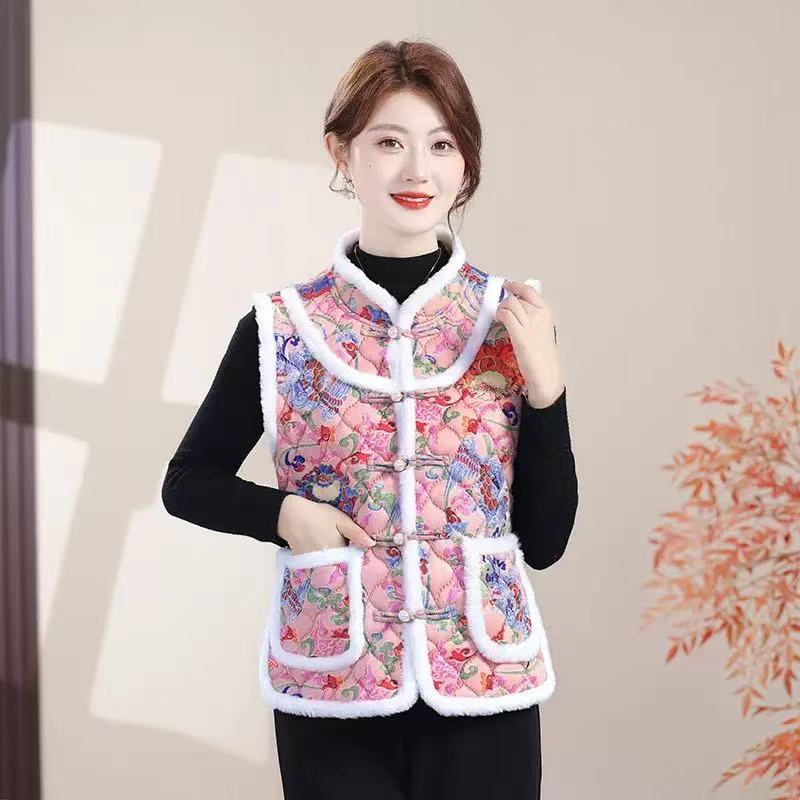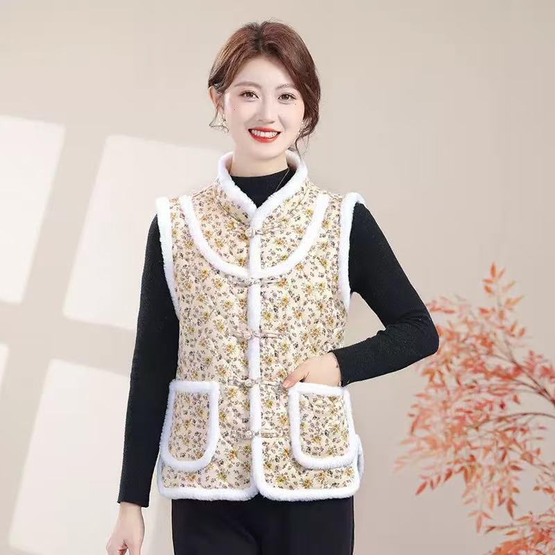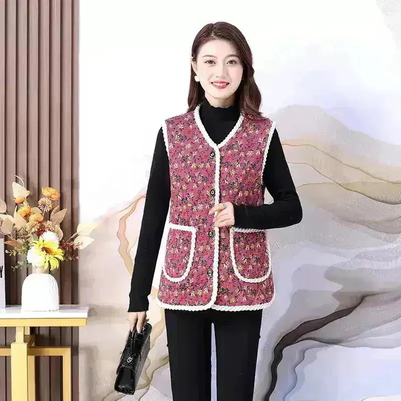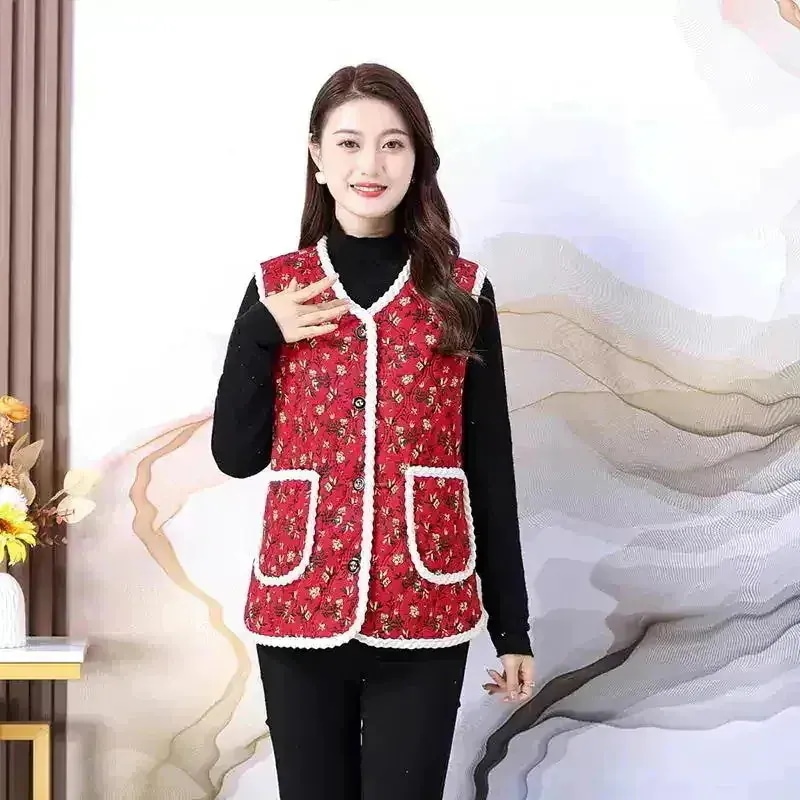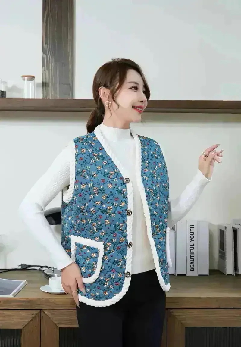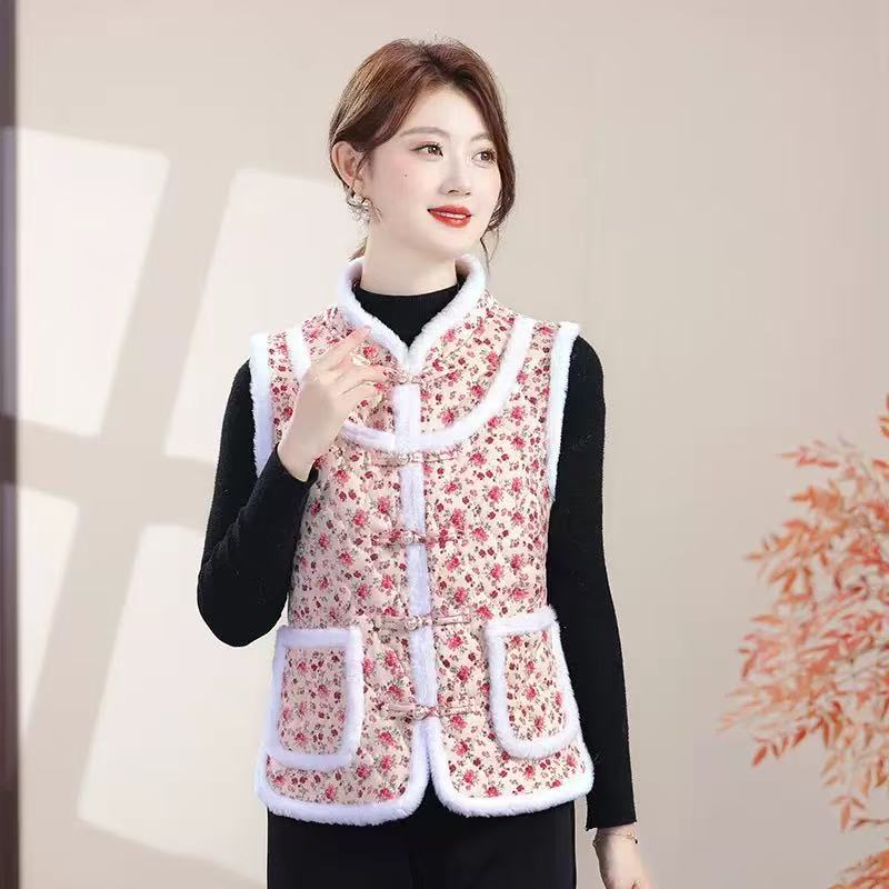 ハルモニチョッキ おばあちゃんチョッキ おばあちゃん ベスト 韓国 裏起毛 キルト キルティング プレゼント 花柄 秋冬 レディース ハルモニベスト ハルモニ