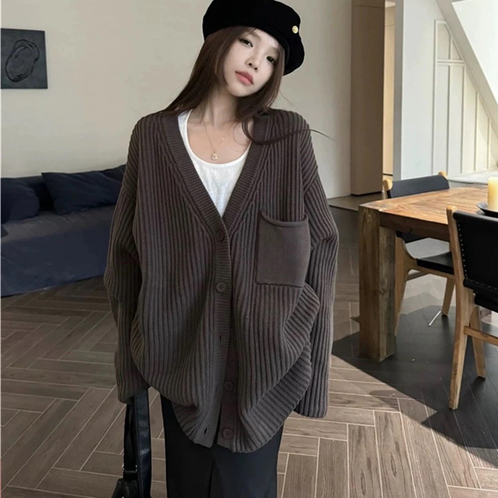 ポケット ニット カーディガン レディース 秋冬 黒 ミディアム 羽織 セーター 長袖 韓国ファッション カジュアル ゆったり ジャケット 可愛い 通勤 通学 着痩せ アウター コート ふんわり