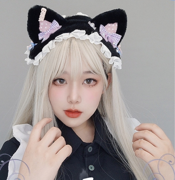 ロリータ レース ヘア飾り メイド ゴシック 猫耳 兎耳 コスプレ ドール アクセサリー ヘアバンド カチューシャ 文化祭 学園祭 ハロウィン クリスマス