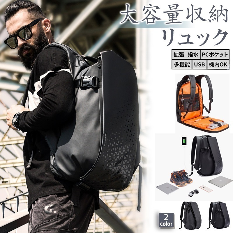 ビジネス リュック 大容量 メンズ バックパック 防水 リュックサック 大きめ ビジネスリュック 黒 ブラック 撥水加工 15.6インチ パソコンリュック ノートPC
