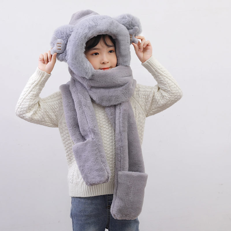 マフラー 帽子 手袋 3点セット ニット シェルニー 裏起毛 ネックウォーマー キッズ 秋冬 ベビー 赤ちゃん 女の子 男の子 暖かい