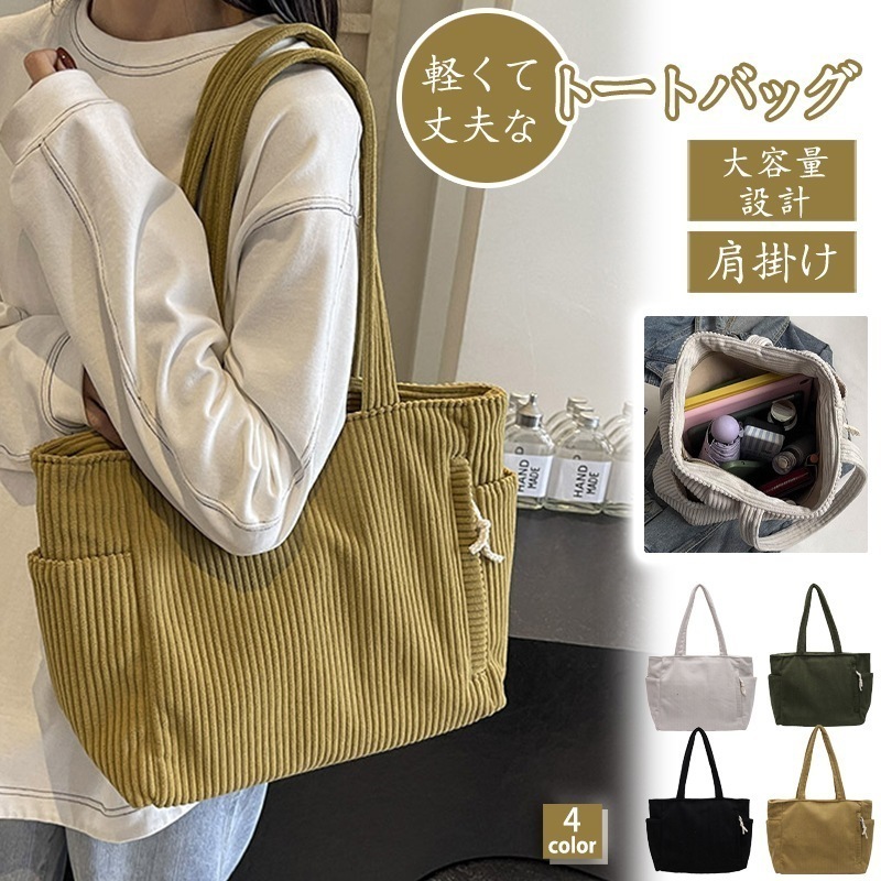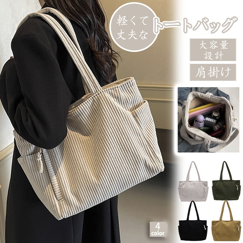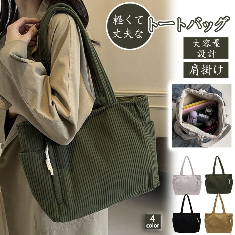 爆買 トートバッグ レディース 軽量 a4 A4 大容量 コーデュロイ おしゃれ 肩掛け 通学 通勤バッグ ママバッグ 多収納 整理整頓 旅行 出張