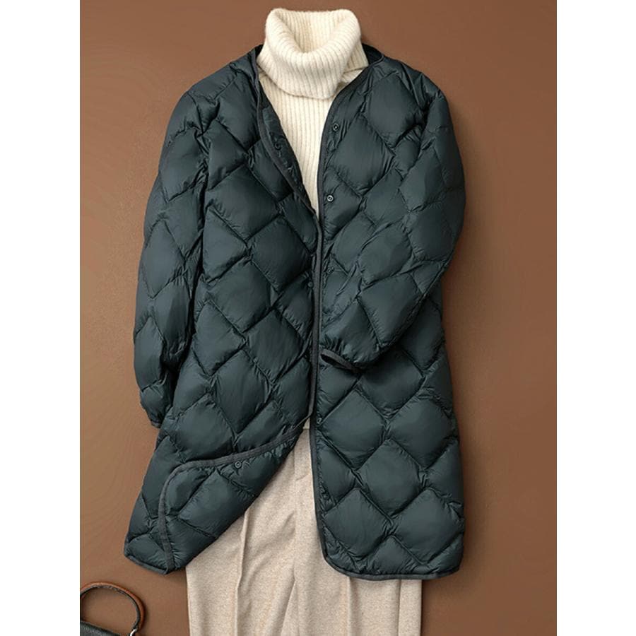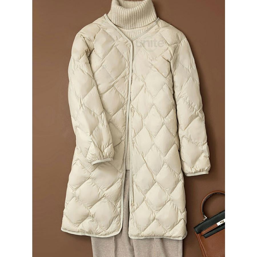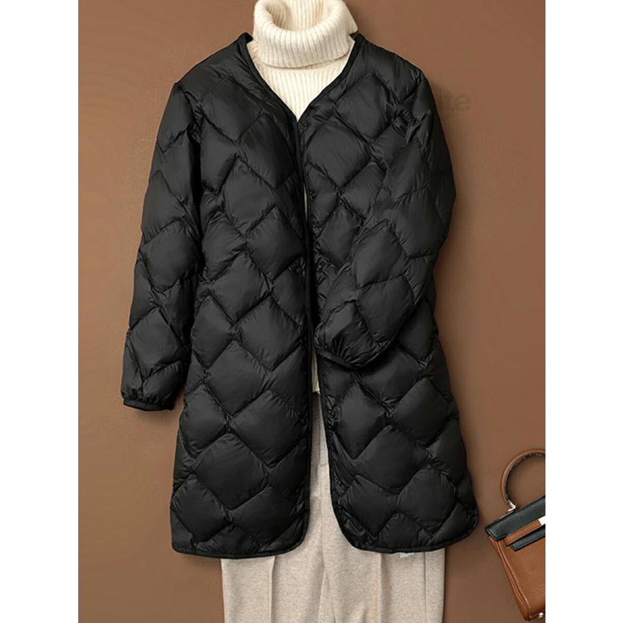 ダウンコート 軽量 ロング丈 キルティングコート ホワイトダックダウン ノーカラーコート チェスターコート アウター レディース 秋 厚手 羽織り ゆったり 防寒