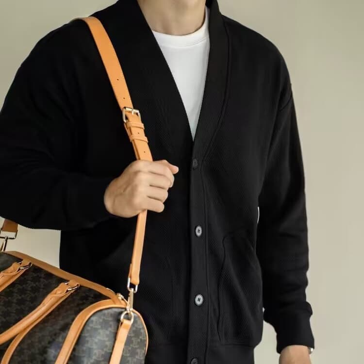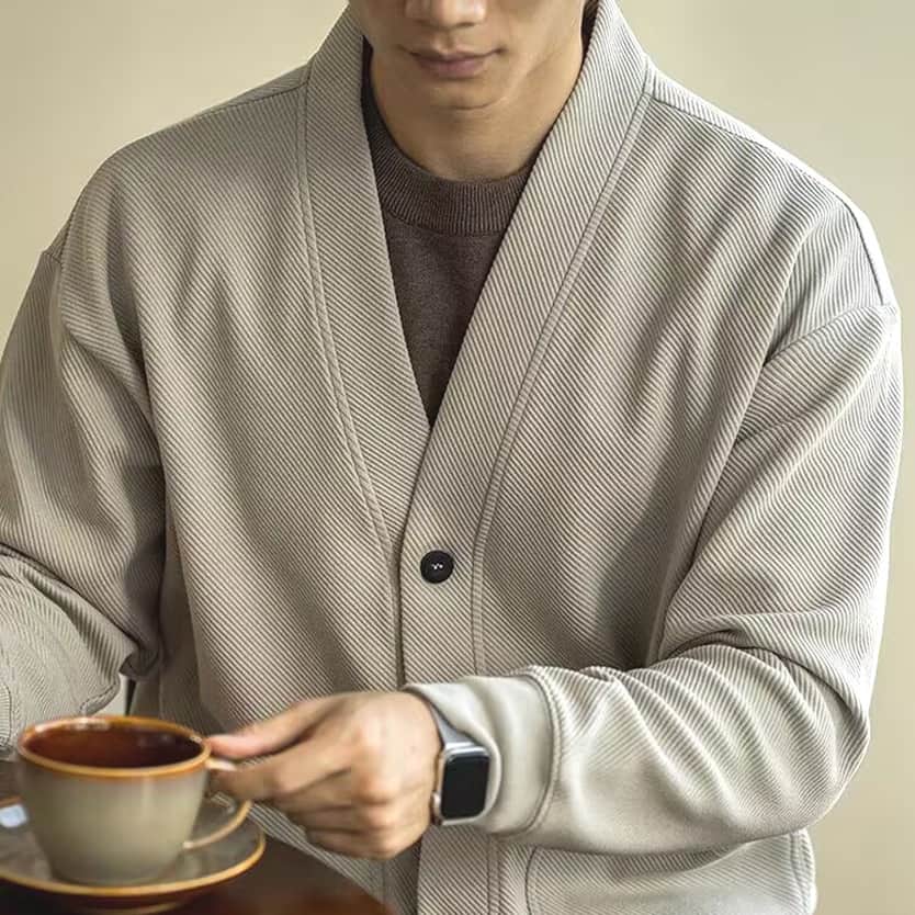 ジャケット メンズ 長袖 Vネックボタン 斜めストライプ カーディガン リブ袖 無地 ポケット付き トップス ライトアウター 羽