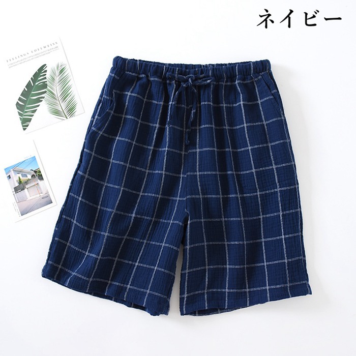 パジャマ パンツ メンズ ダブルガーゼ ショートパンツ チェック柄 ハーフパンツ ウエストゴム ルームウェア 和風 旅館