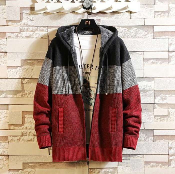 裹起毛ニットカーディガン メンズ 暖かい カーディガン ニットジャケット ボーダー セーター 裹起毛 フード付き 厚手 防寒 アウター