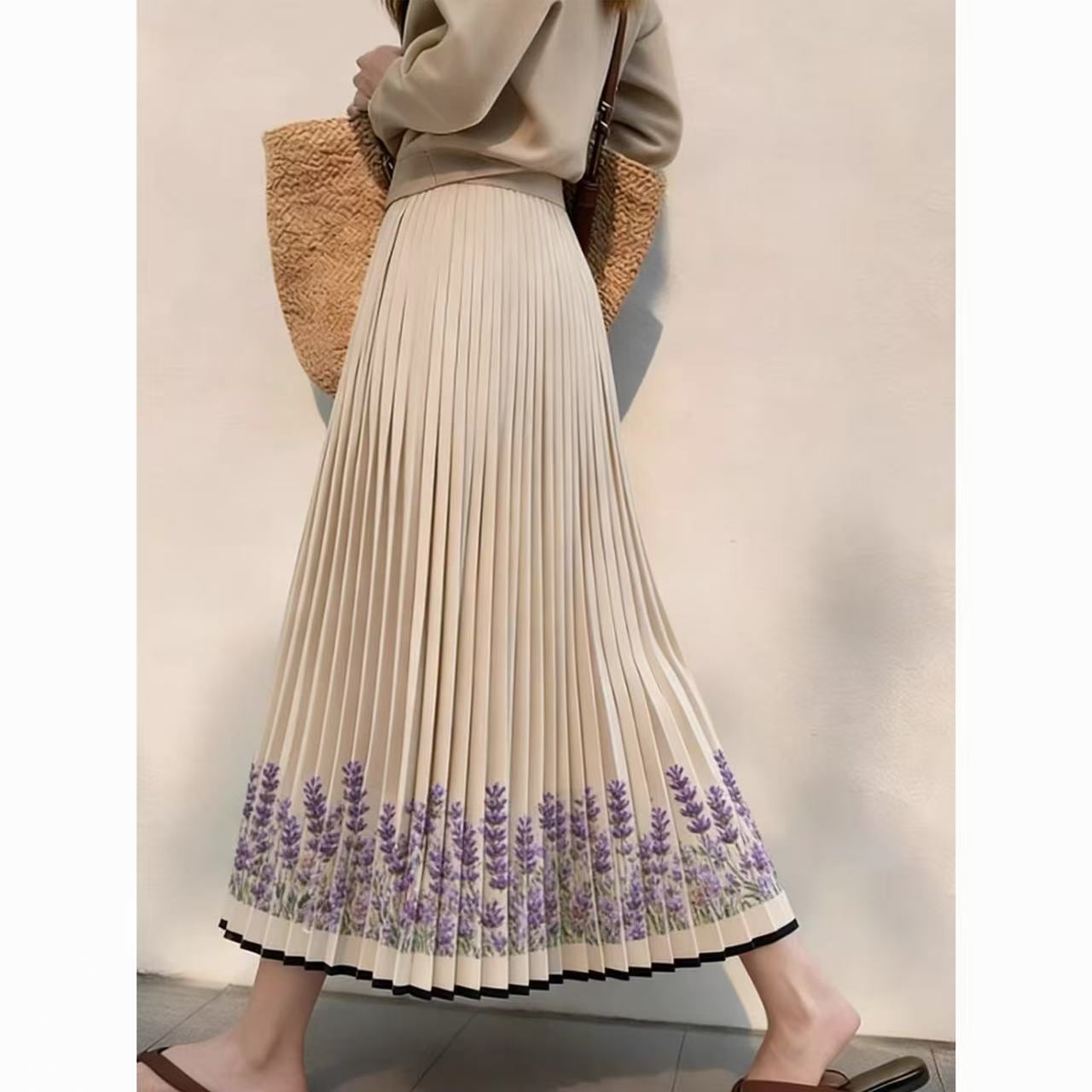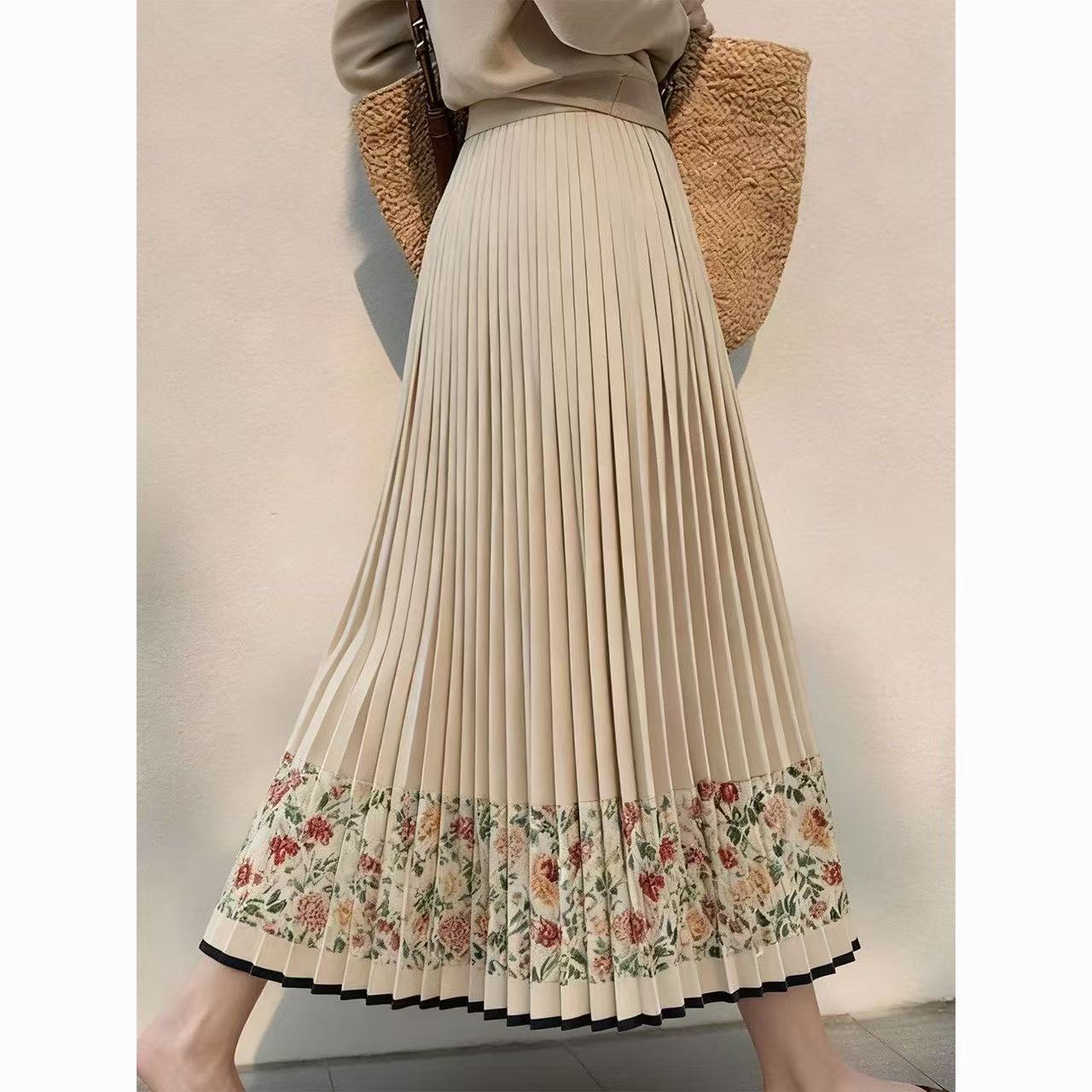 ロングスカート キュート ゆったり フレンチ 可愛い碎花 スカート ハイウエスト 体型カバーAラインスカート长裙 レディースファッション