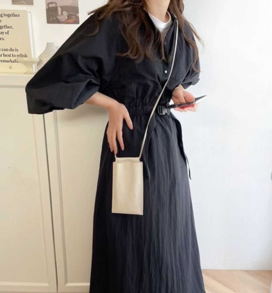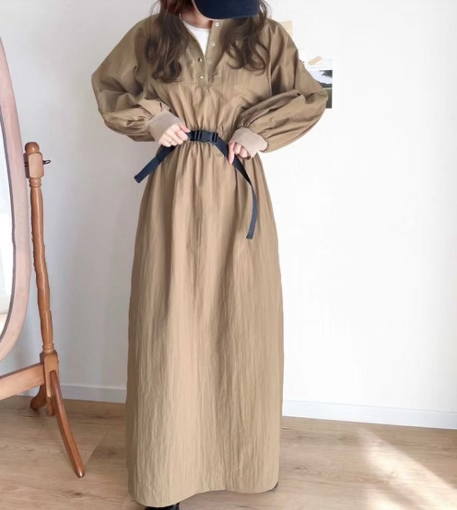 バックル ロングスリーブ ワンピース 2026 春先 Aライン スカート 小柄 ウエストマーク ティーパーティー フレンチ レトロ ワンピース レディース