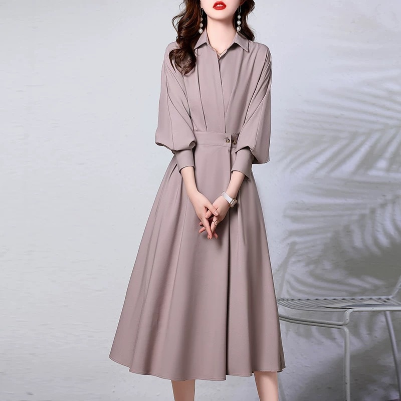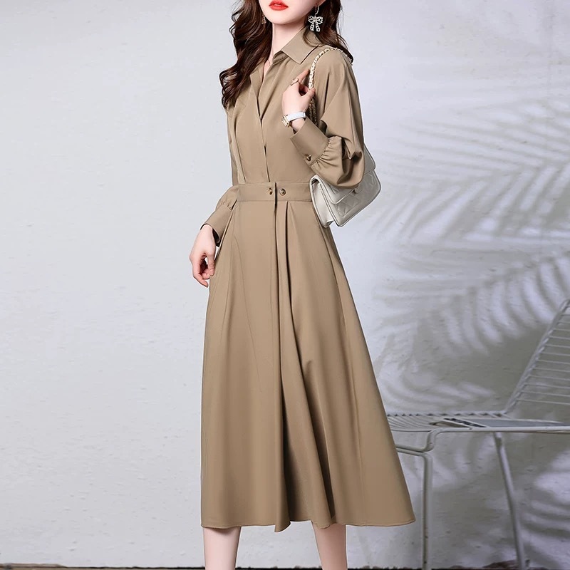 ロングスリーブ シャツワンピース レディース 2026 セレブ 上品 ウエストマーク スタイルアップ 高級感 個性的 ロング丈 ワンピース