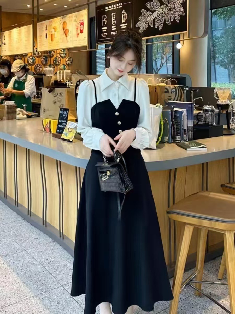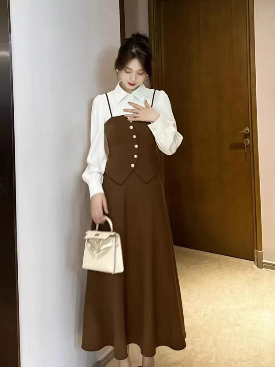 コーデセット ロングスリーブ ツーピース風 シャツ トップス ツーピース風 スカート 2025 ワンピース