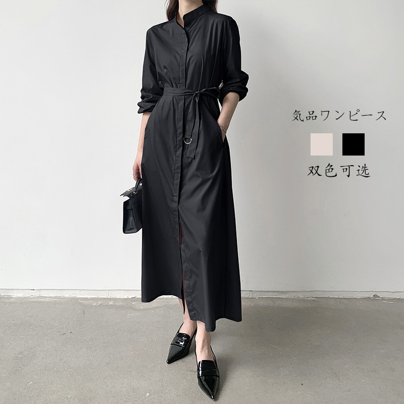 高級感 おしゃれ 上品 ゆったり シャツ ワンピース リボン ワンピース ロング丈 ワンピース