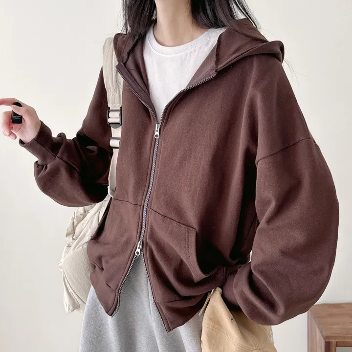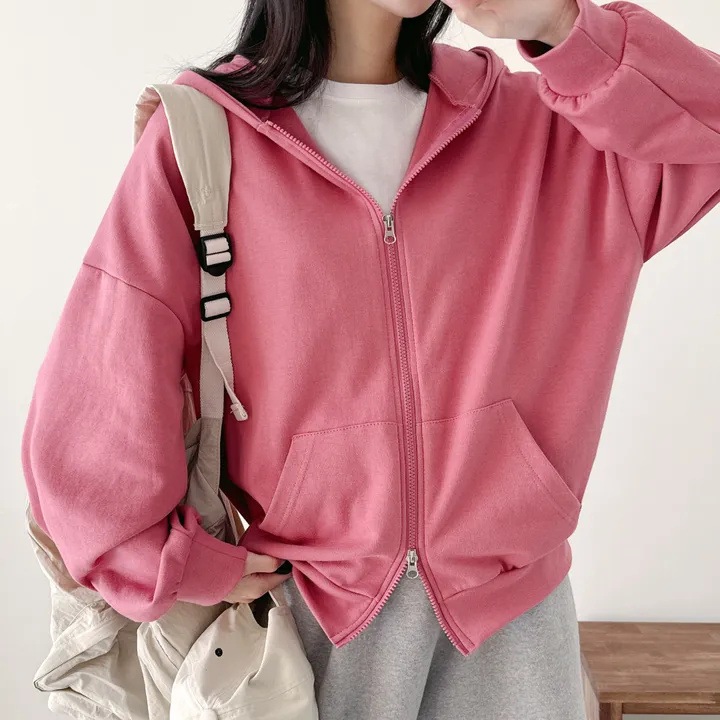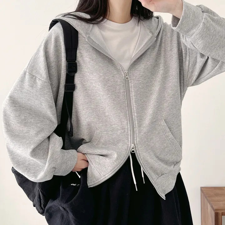 スウェット パーカー レディース ブルゾン アウター トップス ライトアウター フード付き 長袖 前開き ダブルジップ 羽織り ジップアップ 無地 重ね着 レイヤード ゆったり 体型カバー 大人 こな