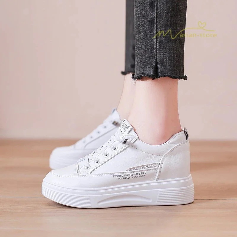 レディース靴白スニーカーフラットローカットカジュアル厚底シューズ歩きやすいインヒール通学疲れにくい靴通勤婦人靴トレンド