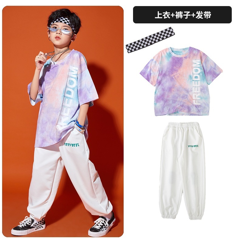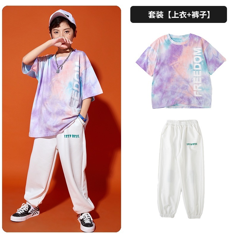 (Kizoo)2026年 男の子&女の子用ストリートダンスセットトレンディなジャズダンスコスチュームヒップホップ子供用パフォーマンスコスチュームタイダイ柄ルーズフィット