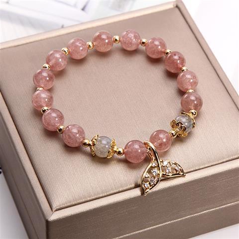 (Kizoo)TikTok天然粉水晶ブレスレット女性募集桃花運いちご晶魚尾手串輸送珠が親友の彼女にプレゼントする