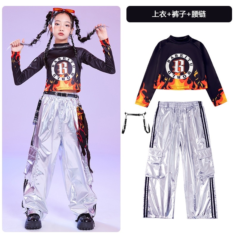 (Kizoo)2026年 女の子用ジャズダンスコスチュームスパンコール付きパフォーマンス子供用ヒップホップダンス衣装ストリートダンスパフォーマンスコスチュームなど