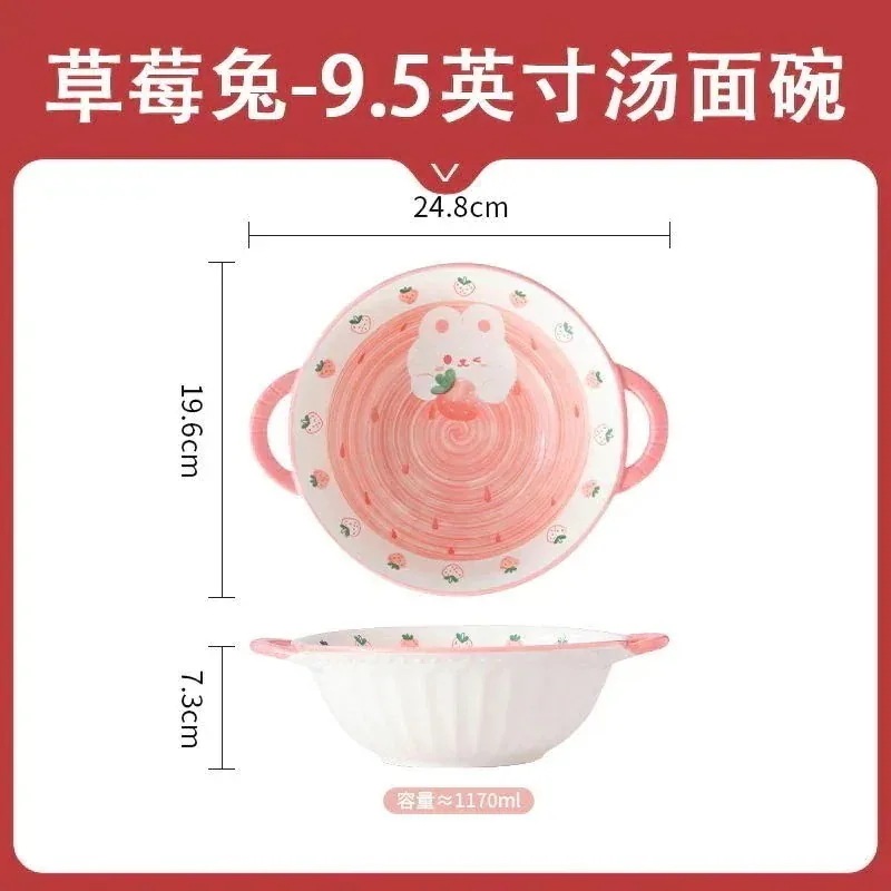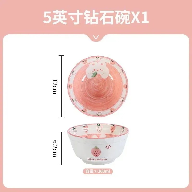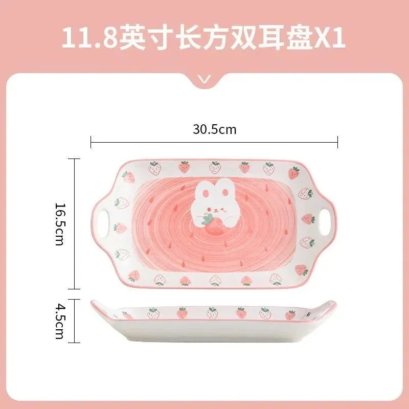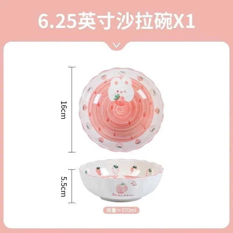 (Kizoo)新作 急速出荷クリエイティブ漫画セラミック食器食器家庭用いちごウサギサラダご飯食器皿引っ越しプレゼントセット食器