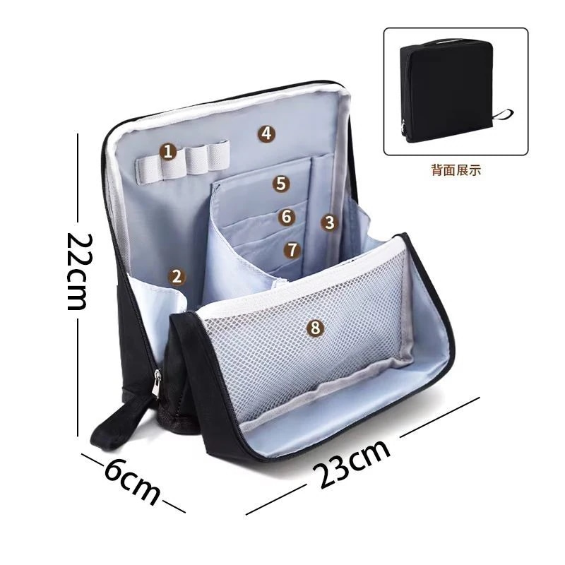 韓国 メイクポーチ 折りたたみ式 ペンケース兼メイクポーチ 自立型 機能的 手提げ付き 持ち運び 化粧品収納 大容量 化粧ポーチ 小物入れ ブラシ入れ 軽い バック 旅行 化粧品 コスメ 収納