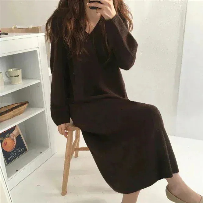 のワンピース おしゃれ シンプル ワンピース アウター 気質 ニットワンピース ロングワンピース 百掛け