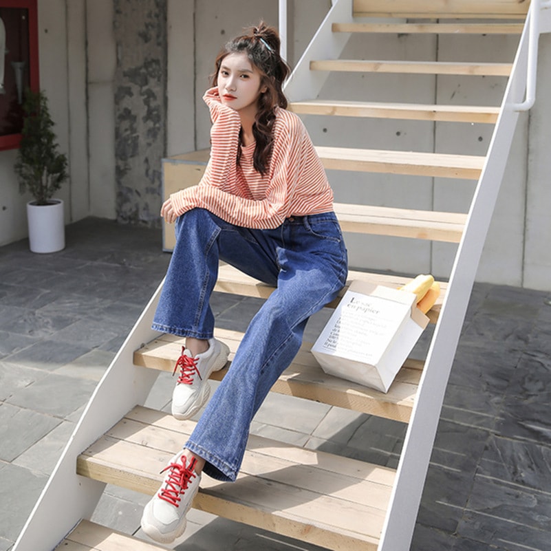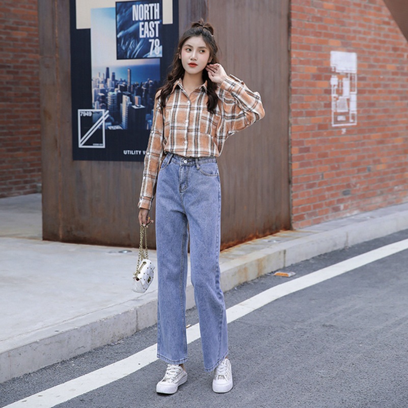 韓国風 学生 デニム レディース 春秋新作 オーバーサイズ ハイウエスト 人気沸騰新柄追加 細見え ワイド ストレート フロアレングス