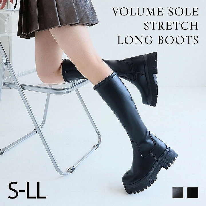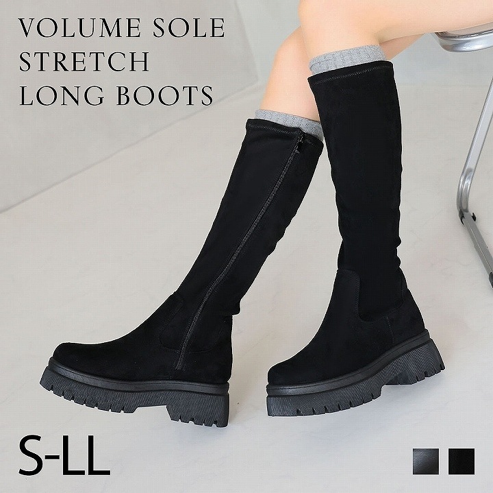 レディース V5615AW ロングブーツ ブーツ ZOZO ボリュームソール 厚底ロングブーツ 防寒 厚底 トラックソール ストレッチ 厚底ブーツ ストレッチブーツ