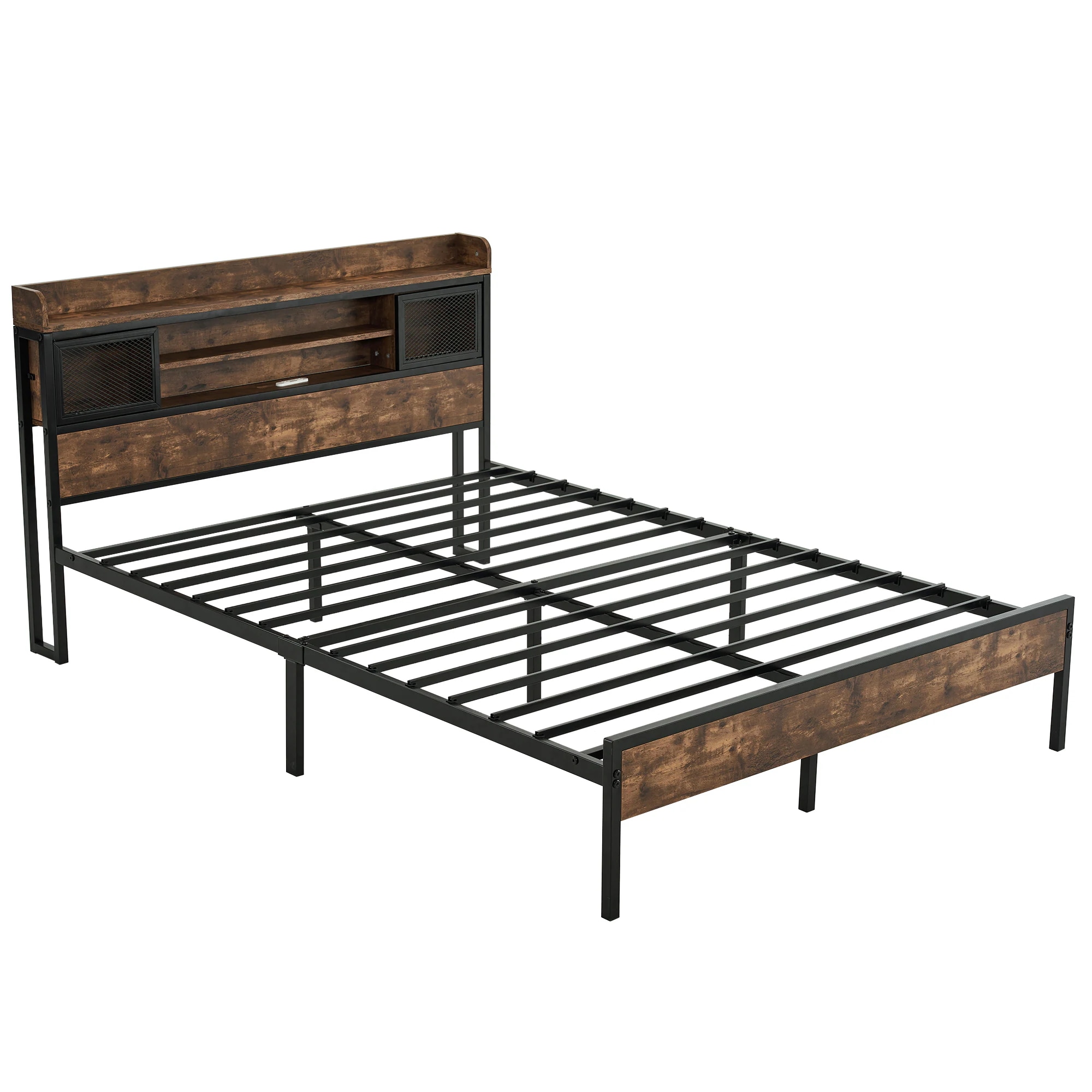 D ベッドフレーム ダブル ダブルベッド パイプベッド コンセント付き 宮付き 木 コンセント ベッド 木製 下収納 スチール おしゃれ ヴィンテージ風 アイアンベッド シンプル 北欧風【Dダブル】