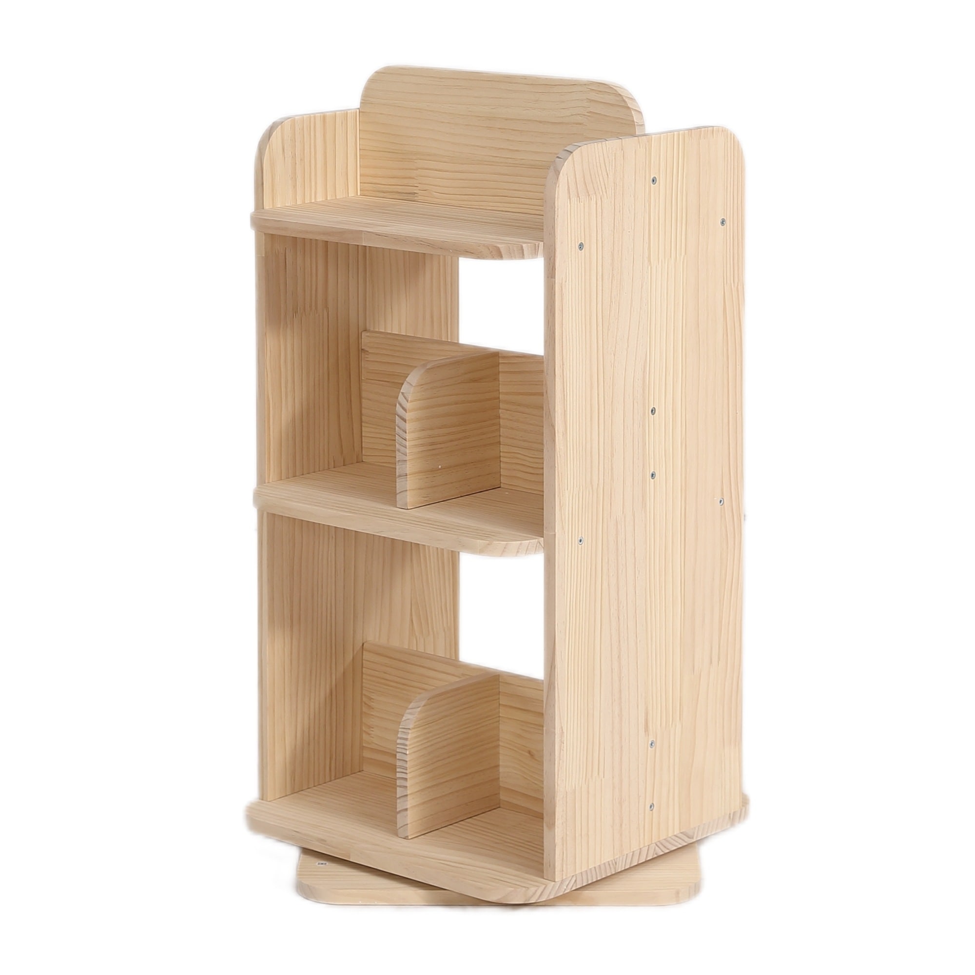 【 三段 】本棚 回転式 天然木製 パイン材 絵本棚 図鑑対応 コミック収納棚 スリム 回転式本棚 A4対応 子供 ブックシェルフ 飾り棚 回転本棚 絵本 漫画 DVDラック 回転ラック コンパクト