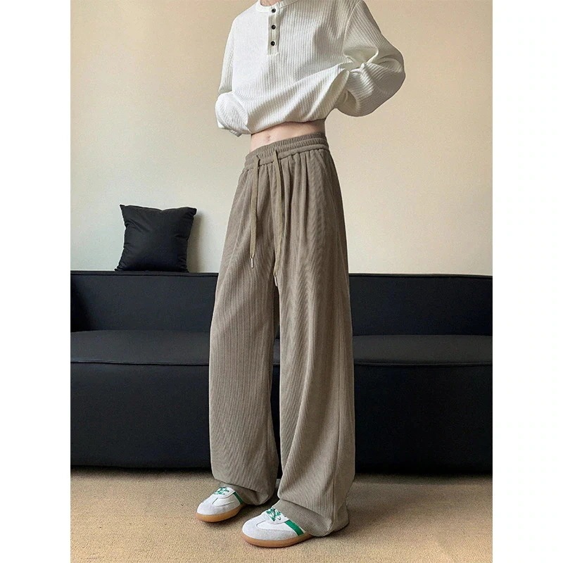 カップルコーデ 男女 ゆったりストレートワイドレッグカジュアルスラックス 春秋 ジョガーパンツ