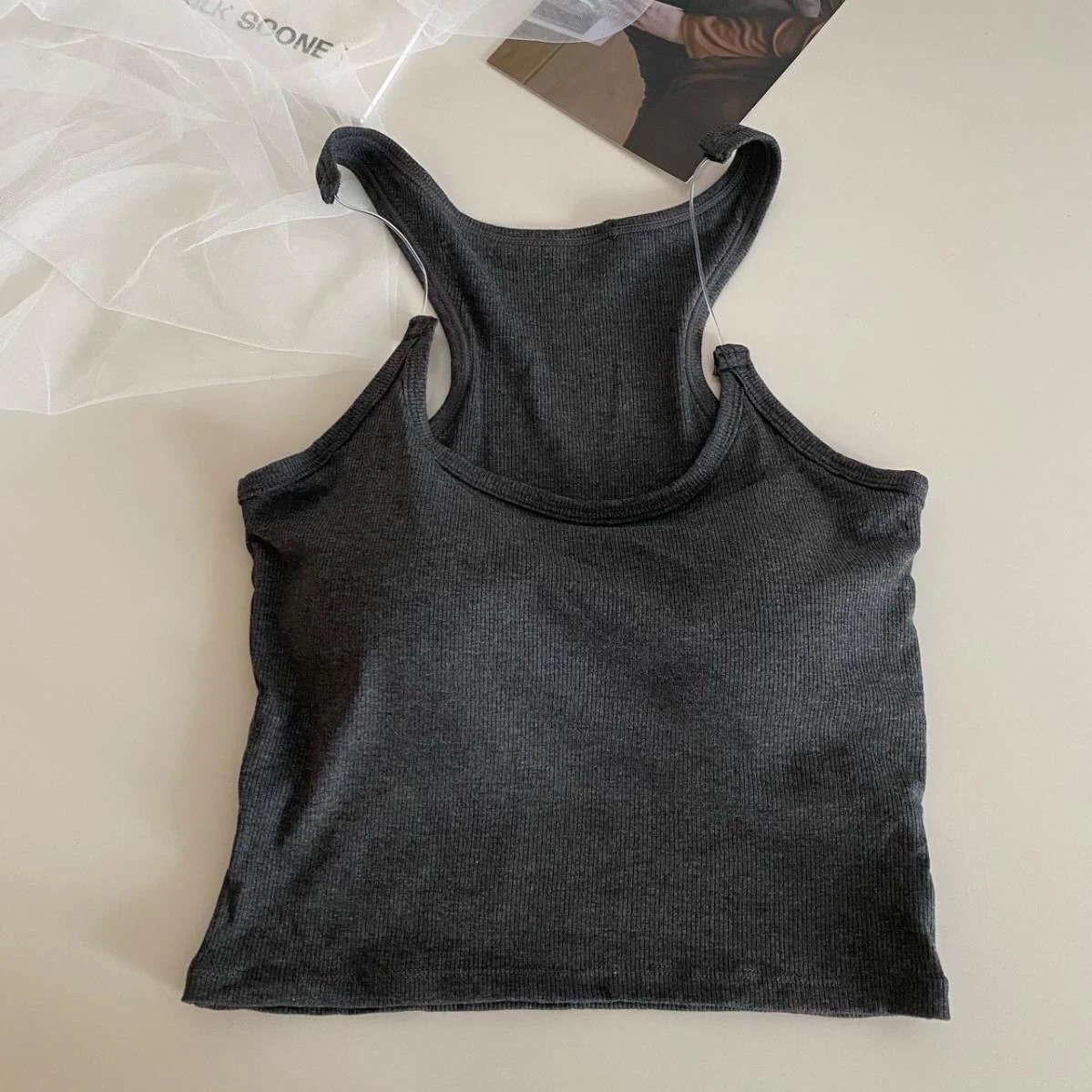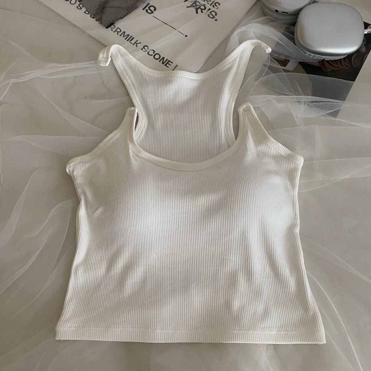 サスペンダー キャミソール セクシー ホローアウト ブラパッド付き タンクトップ トップス