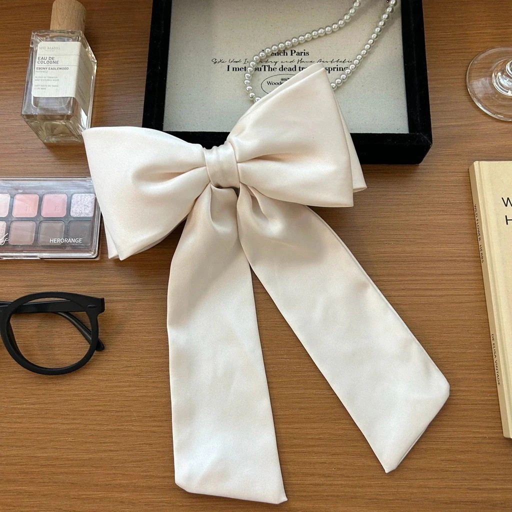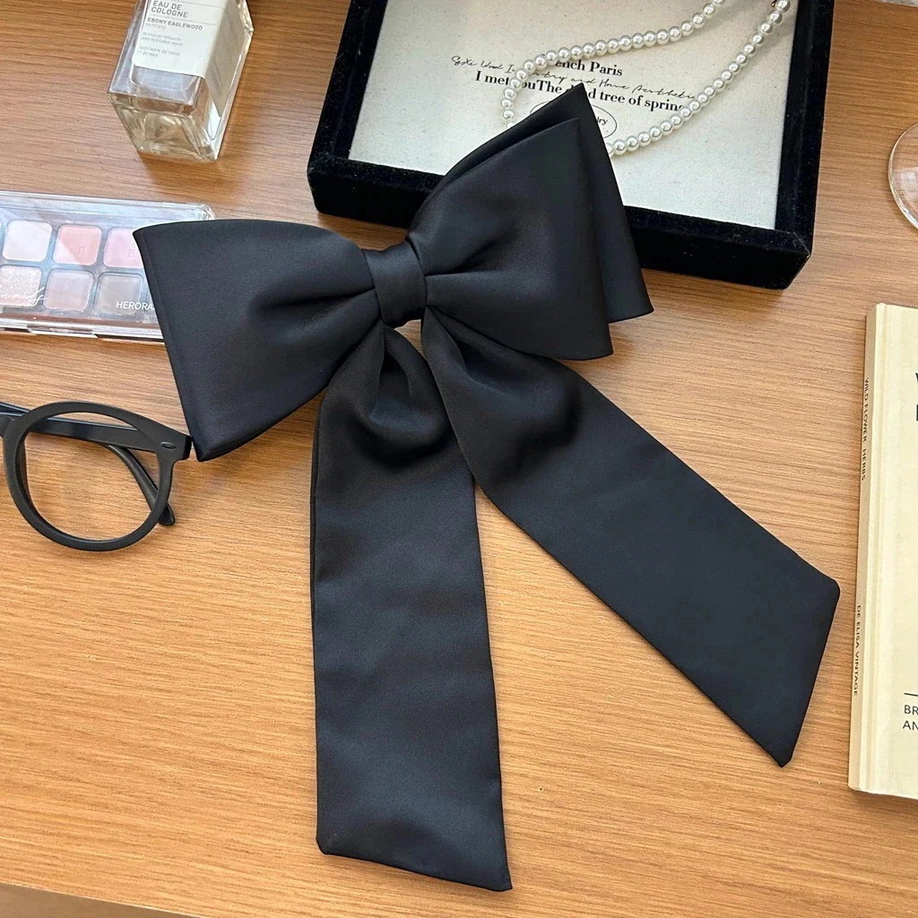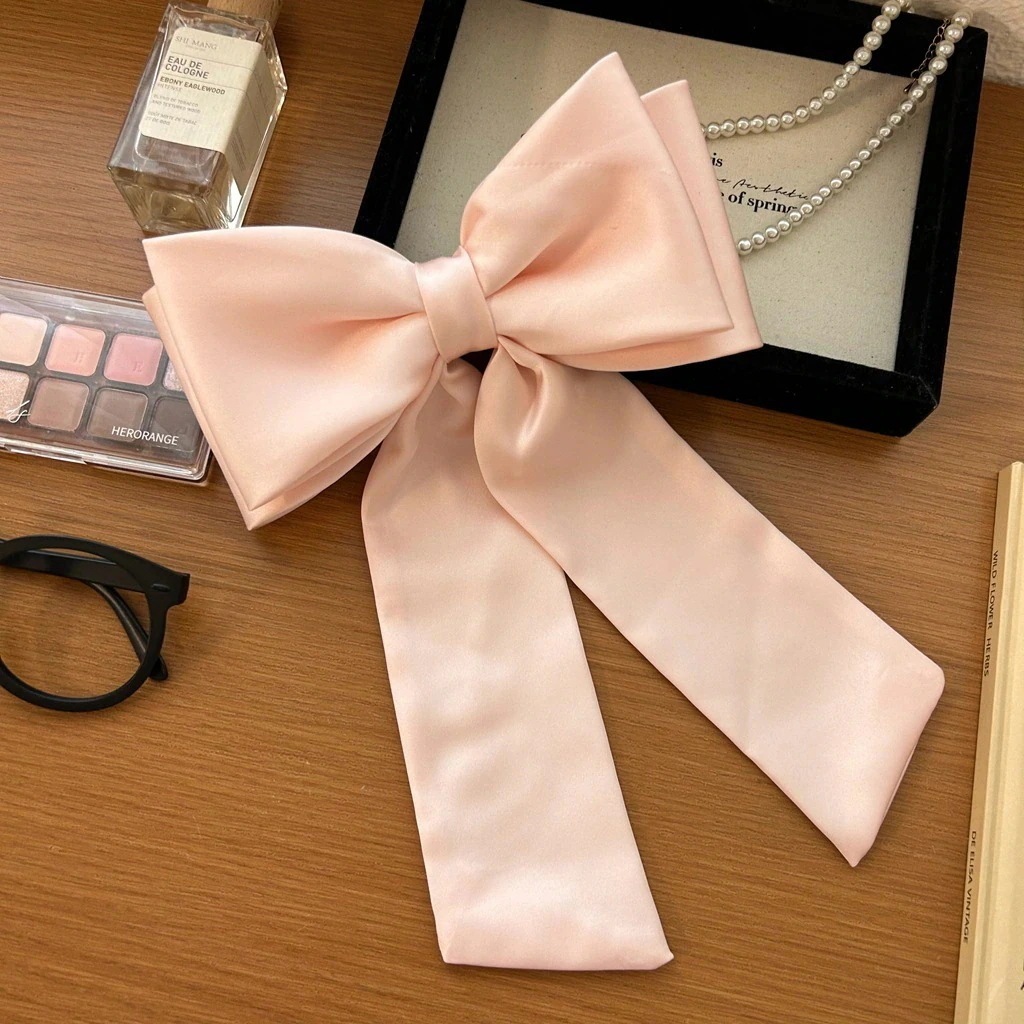 韓国風 サテン 特大ダブルリボン ヘアクリップ 春向け エレガント トップクリップ レディース ヘアピン