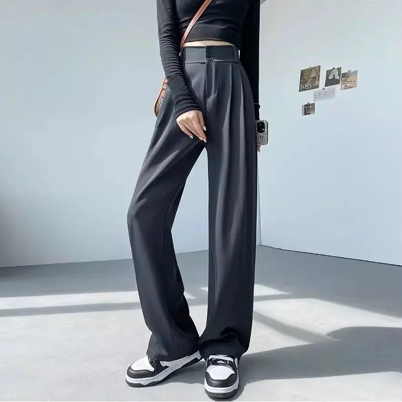 さらさら生地 落ち感あり ワイドパンツ トレンド 韓国ファッション リブ ワイドレッグパンツ レディース イージーパンツ 無地 シンプル さらさら リラックス カジュア
