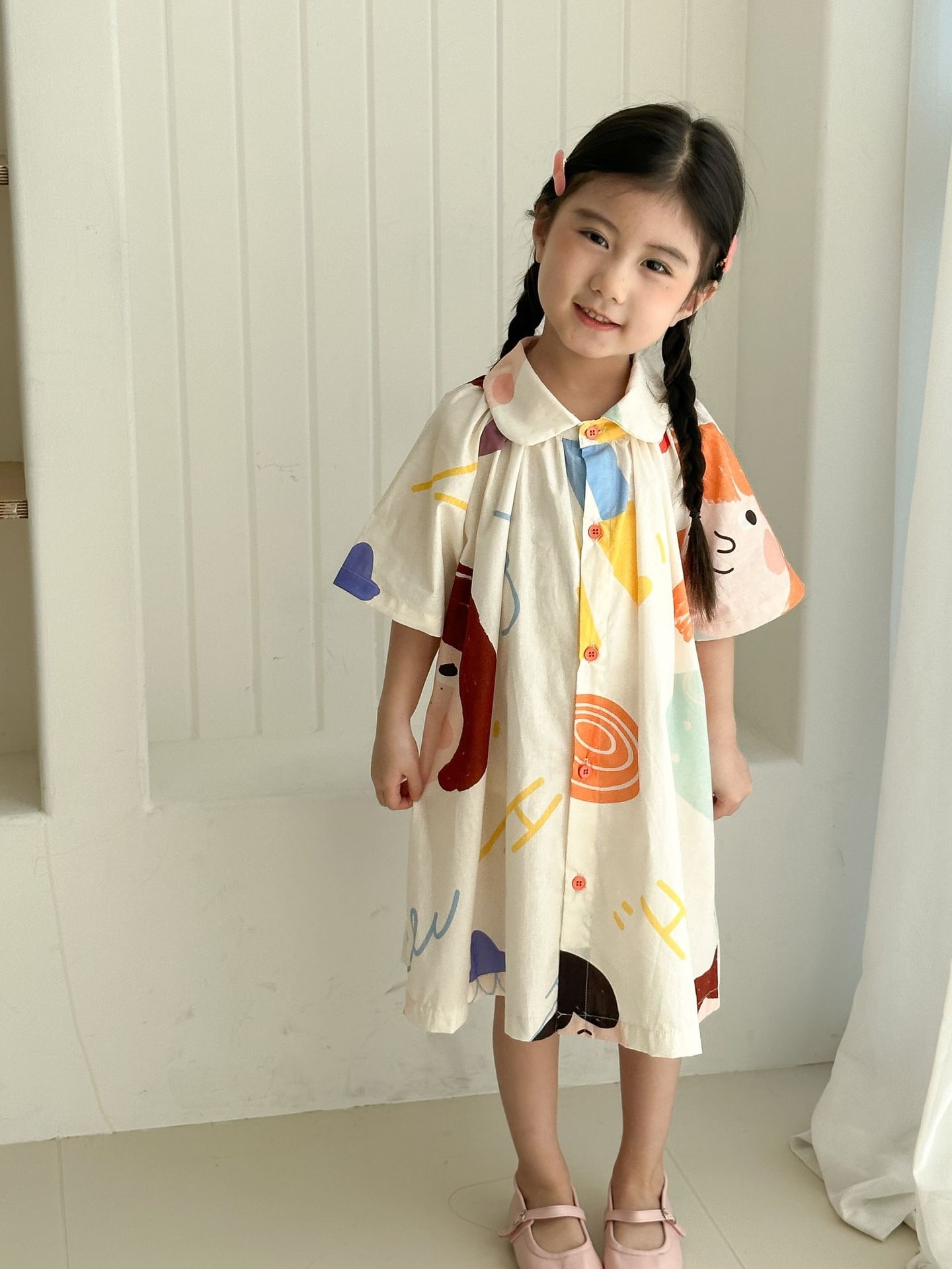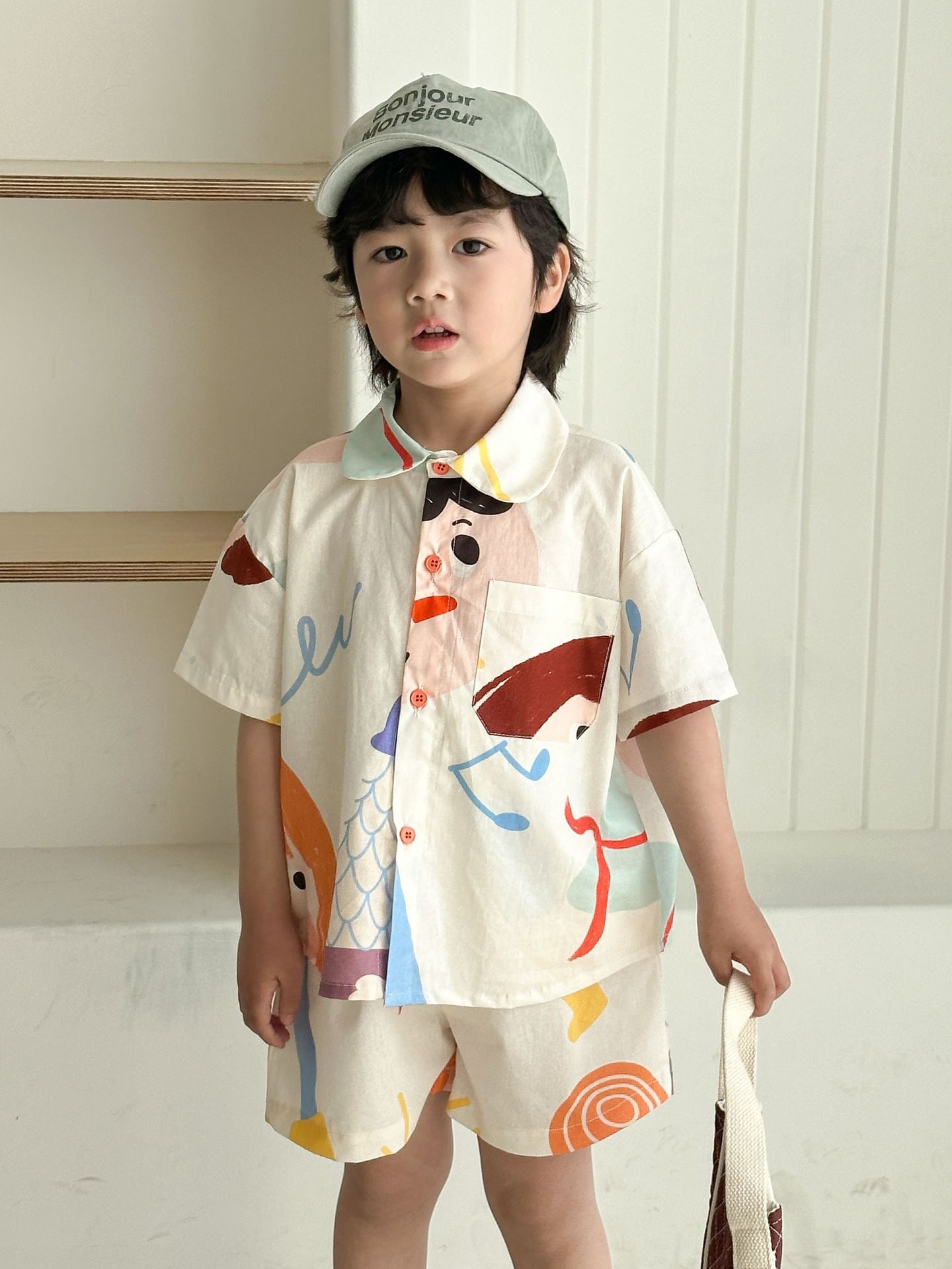2026新作 兄妹お揃い 子供 夏服 韓国風 男の子 半袖シャツセット 女の子 落書き柄ワンピース ベビー キッズ リンクコーデ 兄弟姉妹