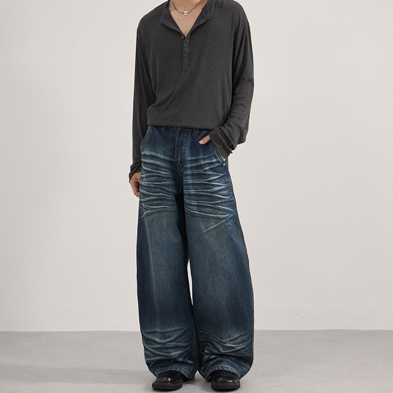 アメリカン 立体感 ホワイトヒゲ ゆったり ジーンズ 男女兼用 高級感 スタイルアップ カーブ ロングパンツ